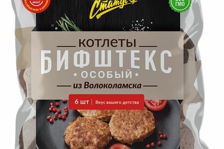 Котлеты Статус Бифштекс Особый из Волоколамска категории Б замороженные, 480г доставка