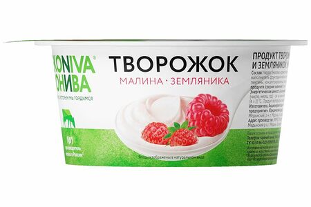 Срок годности в днях: 30Состав: Творог (молоко нормализованное, закваска чистых культур молочнокислых микроорганизмов), ягодный наполнитель малина-земляника (сахар, малина, земляника, вода, загуститель - пектин, концентрированный сок черной моркови, ароматизаторы натуральные).Пищевая ценность: Калорийность: 120Белки: 7Жиры: 5Углеводы: 11.8Страна изготовления: РоссияПроизводитель: ЭкоНива