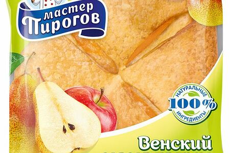 Срок годности в днях: 4Состав: Фруктовый наполнитель «Груша» (груша, сахар, глюкозно-фруктозный сироп, загуститель Е1422, регулятор кислотности лимонная кислота, консервант – сорбиновая кислота), мука пшеничная высшего сорта, маргарин (масла растительные рафинированные дезодорированные, пальмовое и его фракции, вода, ароматизатор натуральный), вода, сахар-песок, дрожжи хлебопекарные, меланж, соль, улучшитель хлебопекарный (пшеничная мука, стабилизатор: карбонат кальция, эмульгатор Е472е, антиокислитель: аскорбиновая кислота, технологические вспомогательные средства: ферменты (амилазы и гемицеллюлазы)).Пищевая ценность: Калорийность: 370Белки: 5Жиры: 15Углеводы: 53Страна изготовления: РоссияПроизводитель: Мастер Пироговъ