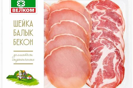 Мясное ассорти из свинины Велком Шейка-балык-бекон сырокопчёное нарезка, 150г доставка