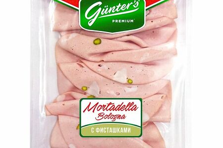 Колбаса варёная Gunters Мортаделла Премиум с Фисташками категории А, 120г доставка