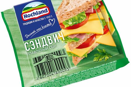 Сыр плавленый Hochland Сэндвич ломтики 45%, 150г доставка