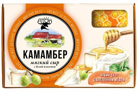 Сыр мягкий Атон Камамбер с белой плесенью и мёдом 50-60%, 100г доставка
