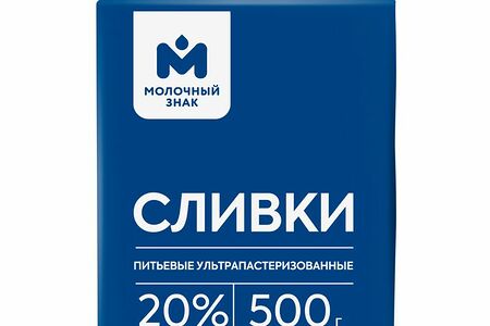 Сливки питьевые ультрапастеризованные 20% Молочный Знак, 500мл доставка
