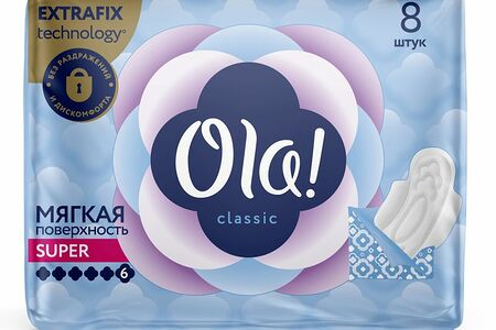 Прокладки Ola! Classic wings singles super впитывающие для обильных выделений, 8шт доставка