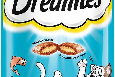 Лакомство Dreamies для кошек подушечки с лососем, 60г доставка