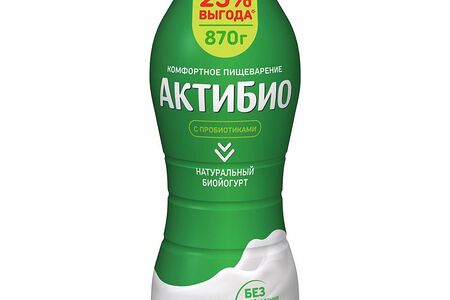 Срок годности в днях: 35Состав: Нормализованное молоко, восстановленное молоко из сухого молока, йогуртовая закваска, бифидобактерии B. Lactis*. Без добавления сахара. Содержит сахара природного (естественного) происхождения. * Эксклюзивные бифидобактерии B.Lactis CNCM I-2494.Пищевая ценность: Калорийность: 51Белки: 3.5Жиры: 1.8Углеводы: 5.3Страна изготовления: РоссияПроизводитель: Актибио