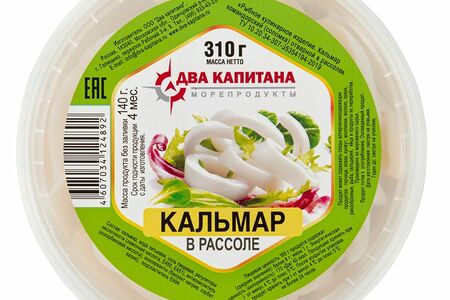 Кальмар Два капитана командорский отварной соломка в рассоле, 310г доставка