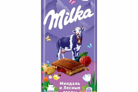 Шоколад молочный Milka с двухслойной начинкой Миндаль и Лесные ягоды, 85г доставка