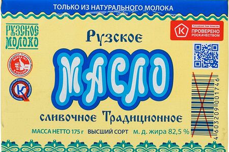 Масло сливочное Рузское Молоко Традиционное 82.5%, 175г доставка