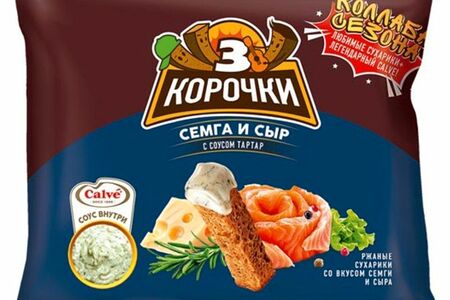 Сухарики Три корочки со вкусом сёмга с сыром, 60г + соус тартар, 25мл доставка
