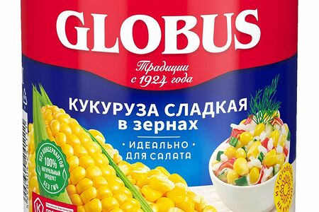 Срок годности в днях: 1460Состав: Сладкая кукуруза в зернах, вода питьевая, сахар-песок, соль поваренная пищевая.Пищевая ценность: Калорийность: 57.8Белки: 2.9Жиры: 0.6Углеводы: 9.9Страна изготовления: РоссияПроизводитель: Globus