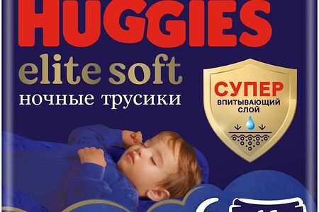 Трусики-подгузники Huggies Элит Софт 6 ночные 15-25кг, 16шт доставка