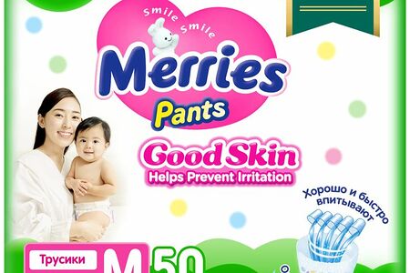 Трусики Merries Good Skin для детей 7-12кг р.M, 50шт доставка
