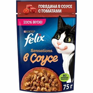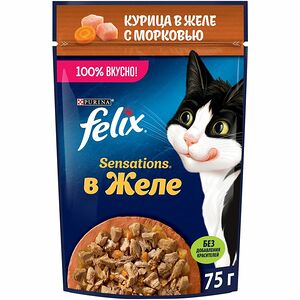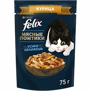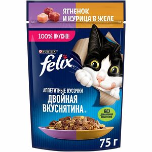 Корм Felix Аппетитные кусочки с курицей и томатами в желе консервированный для взрослых кошек, 75г доставка