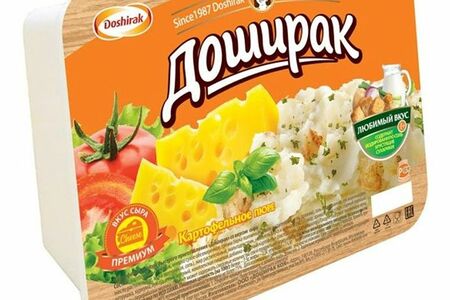 Срок годности в днях: 365Состав: Картофельные хлопья, молоко сухое обезжиренное, гренки (мука пшеничная, масло растительное, соль, дрожжи), соль йодированная (соль, йодат калия), лук жареный (лук, масло растительное, мука пшеничная, соль), жир растительный, мальтодекстрин, усилитель вкуса и аромата (Е621), сахар, ароматизатор «сыр», сырный порошок, петрушка, куркума, лук сушеный зеленый, комплексная пищевая добавка «Печёный картофель» (лактоза, соль, ароматизатор).Пищевая ценность: Калорийность: 350Белки: 7.5Жиры: 2.3Углеводы: 75Страна изготовления: РоссияПроизводитель: Доширак