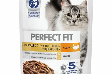 Влажный корм Perfect Fit для кошек с чувствительным пищеварением с индейкой в соусе, 75г доставка