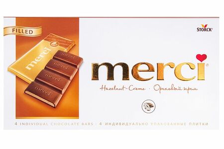 Шоколад молочный Merci с ореховым кремом, 112г доставка