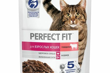 Влажный корм Perfect Fit полнорационный для взрослых кошек с говядиной в соусе, 75г доставка