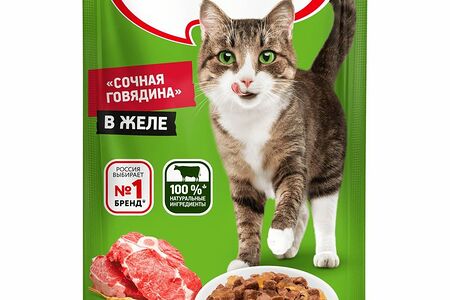 Влажный корм Kitekat для взрослых кошек со вкусом говядины в желе Сочная говядина, 85г доставка