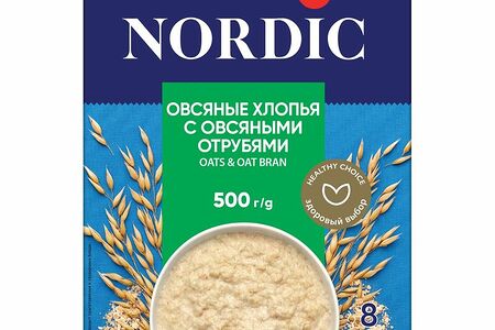 Хлопья Nordic овсяные с овсяными отрубями, 500г доставка