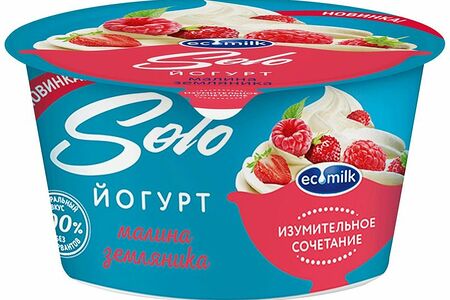 Йогурт Экомилк Соло с малиной и земляникой 4.2%, 130г доставка