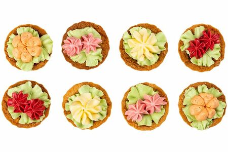 Срок годности в днях: 7Состав: Сахар, мука пшеничная в/с, маргарин молочный (рафинированные и дезодорированные растительные масла, вода, эмульгаторы (моно- и диглицериды жирных кислот), краситель (аннато-куркумин), масло сливочное, яйцо куриное пищевое, пюре яблочное, молоко цельное, клубника с/м, патока крахмальная, регулятор кислотности (лимонная кислота), разрыхлитель (сода пищевая (карбонат натрия), стабилизатор (пектин), соль, ароматизатор идентичный натуральному «Ванилин», консервант (сорбиновая кислота), натуральные красители («Хлорофиллин», «Экстракт Лютеина», «Кармин»).Пищевая ценность: Калорийность: 412Белки: 6.5Жиры: 27.2Углеводы: 35.4Страна изготовления: РоссияПроизводитель: У Палыча