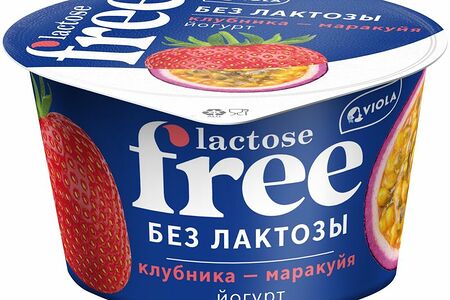 Йогурт Viola free клубника-маракуйя безлактозный с наполнителем 2.7%, 180г доставка