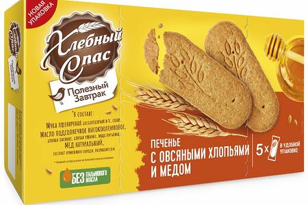 Печенье Хлебный Спас Полезный завтрак с овсяными хлопьями и мёдом, 155г доставка