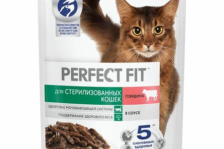 Влажный корм Perfect Fit полнорационный для стерилизованных кошек с говядиной в соусе, 75г доставка