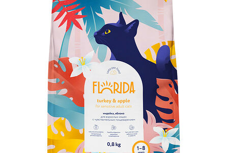 Сухой корм Florida для взрослых кошек с чувствительным пищеварением Индейка и яблоки доставка