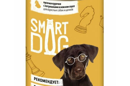 Консервы для взрослых собак и щенков Smart Dog кусочки курочки с потрошками в нежном соусе 400 г доставка