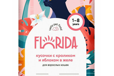 Паучи для взрослых кошек Florida Florida: кусочки с кроликом и яблоком в желе 85 г доставка