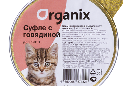 Консервы мясное суфле с говядиной для котят Organix доставка
