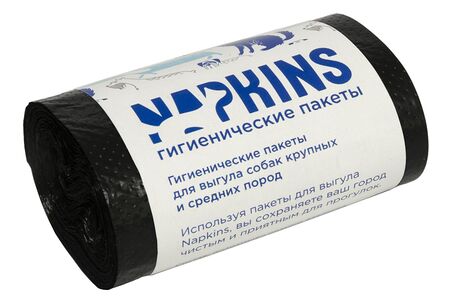 Пакеты гигиенические NAPKINS для выгула собак средних и крупных пород, черный, 24х36 см, 20 шт. доставка