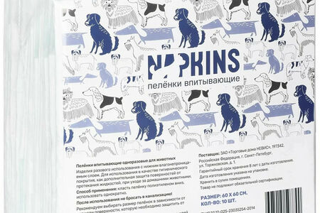 Впитывающие пеленки NAPKINS для собак, 60х60 см 10 шт доставка