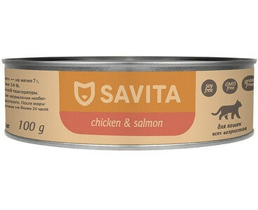 Консервы Savita для кошек и котят Цыплёнок с лососем доставка