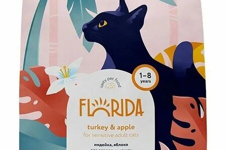 Сухой корм Florida с индейкой и яблоком для взрослых кошек 3+1 кг. доставка