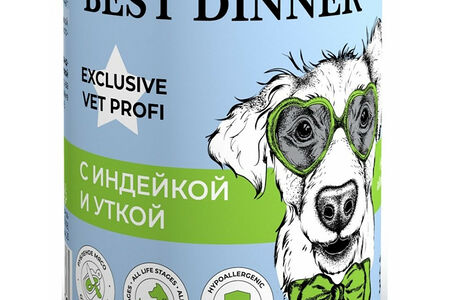 Best Dinner Exclusive Vet Profi Hypoallergenic с индейкой и уткой для профилактики пищевой аллергии у взрослых собак и щенков 340 г доставка