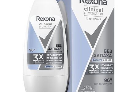 Део-ролл `REXONA` CLINICAL PROTECTION без запаха 96ч (гипоаллергенный) 50 мл доставка