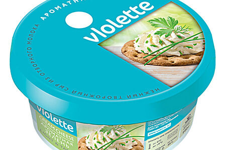 Московский завод «Карат» предлагает творожный сыр с зеленью «Violette», приготовленный из натуральных ингредиентов: пастеризованного молока, сушёных петрушки, лука и укропа, чеснока, молокосвёртывающих ферментов и заквасочных микроорганизмов.