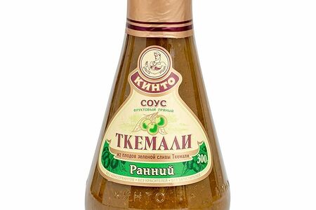 Соус Кинто фруктовый ткемали ранний – абсолютно натуральный продукт, основным ингредиентом которого является зеленое пюре ткемали (алычи), приправленное сахаром, свежей зеленью кинзы, укропа, чесноком, семенем кориандра, молотым красным перцем.