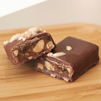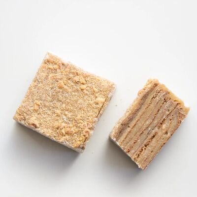 Мука безглютеновая (рисовая, амарантовая, льняная, миндальная), какао масло, кокосовое масло, вода, соль, псиллиум, ксантовая камедь, разрыхлитель, кокосовая сгущенка, кокосовый сахар, кешью, семена гречихи татарской, сливки кокосовые, сироп топинамбура, кукурузный крахмал, экстракт ванили, лецитин подсолнечный, грецкий орех, темный шоколад