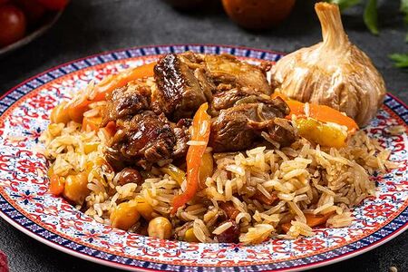 Традиционный узбекский плов из баранины с добавлением сладкого изюма и нута, желтой и красной моркови. Продавец: ИП Идигова Дзара Саидасановна (200452486536) 366021, Россия, Чеченская респ., п. Гикало, с/х «Тепличный», д. 1 23200000012436