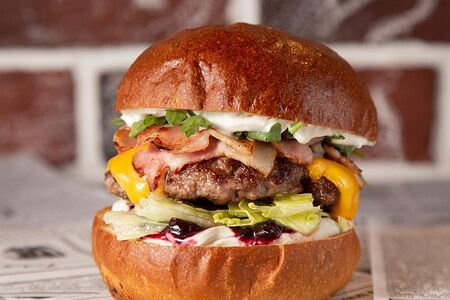 Булочка бриошь, котлета из мраморной говядины, груша карамелизированная, сыр дроблю, бекон, салат айсберг. Продавец: ИП Макаров Михаил Валентинович (773405838865) г. Москва, ул. Берзарина, д. 28а, к. 4, кв. 129 321774600171539