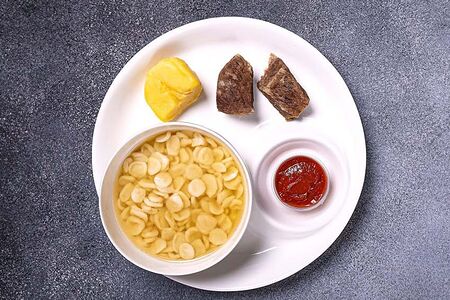 Маленькие галушки из пресного теста, подаются в наваристом говяжьем бульоне с мясом и соусом Продавец: ИП Изиев Хамид Уллубиевич (056201967792) 367009, Дагестан респ, Махачкала г, Советский р-он, ул Керимова, дом 15Б, корп 4, кв 87 322057100072522