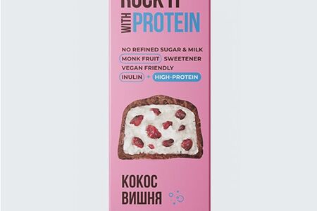 Батончик протеиновый кокосовый с вишней в шоколаде ROCK IT WITH доставка