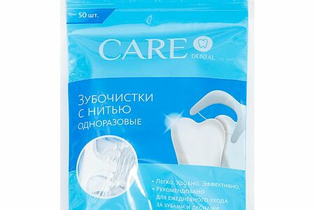 Зубочистки Care Dental 50 шт с нитью одноразовые доставка