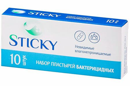 Набор пластырей Sticky 10 шт бактерицидный влагостойкий невидимый доставка