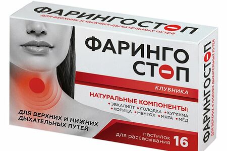 Фарингостоп 16 шт пастилки со вкусом клубники доставка